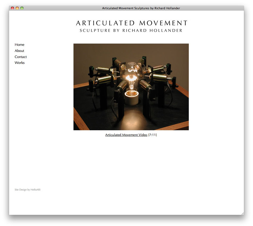 Richard Hollander’s sculptures represent a fusion of visual and acoustic rhythm animated by digital and mechanical control mechanisms. The website includes a simple and clean design that highlights both video and still image galleries.
