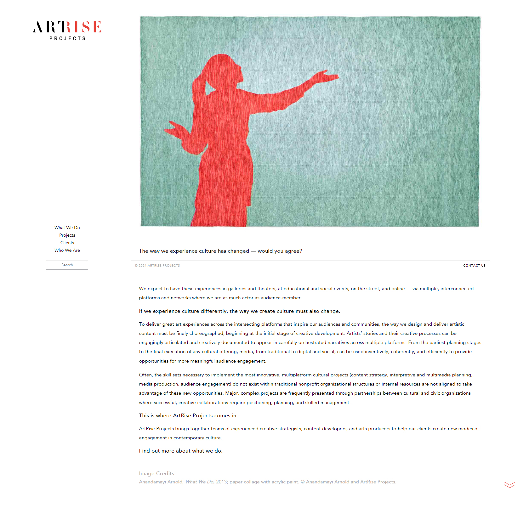 ArtRise Projects brings together teams of experienced creative strategists, content developers, and arts producers focused on creating new modes of engagement in contemporary culture.