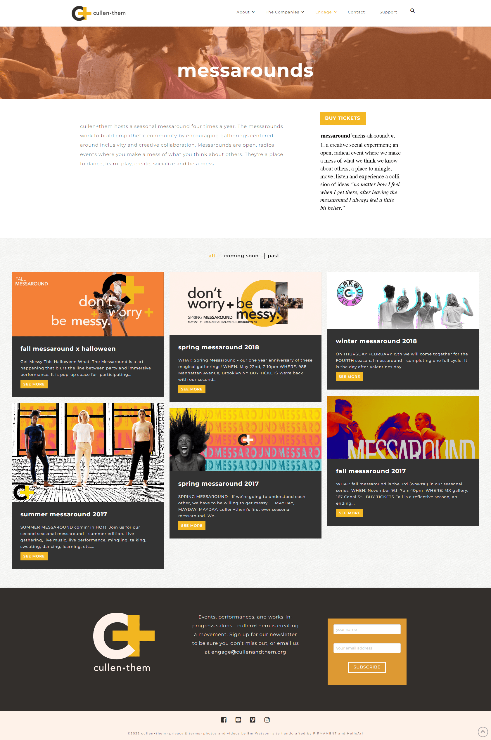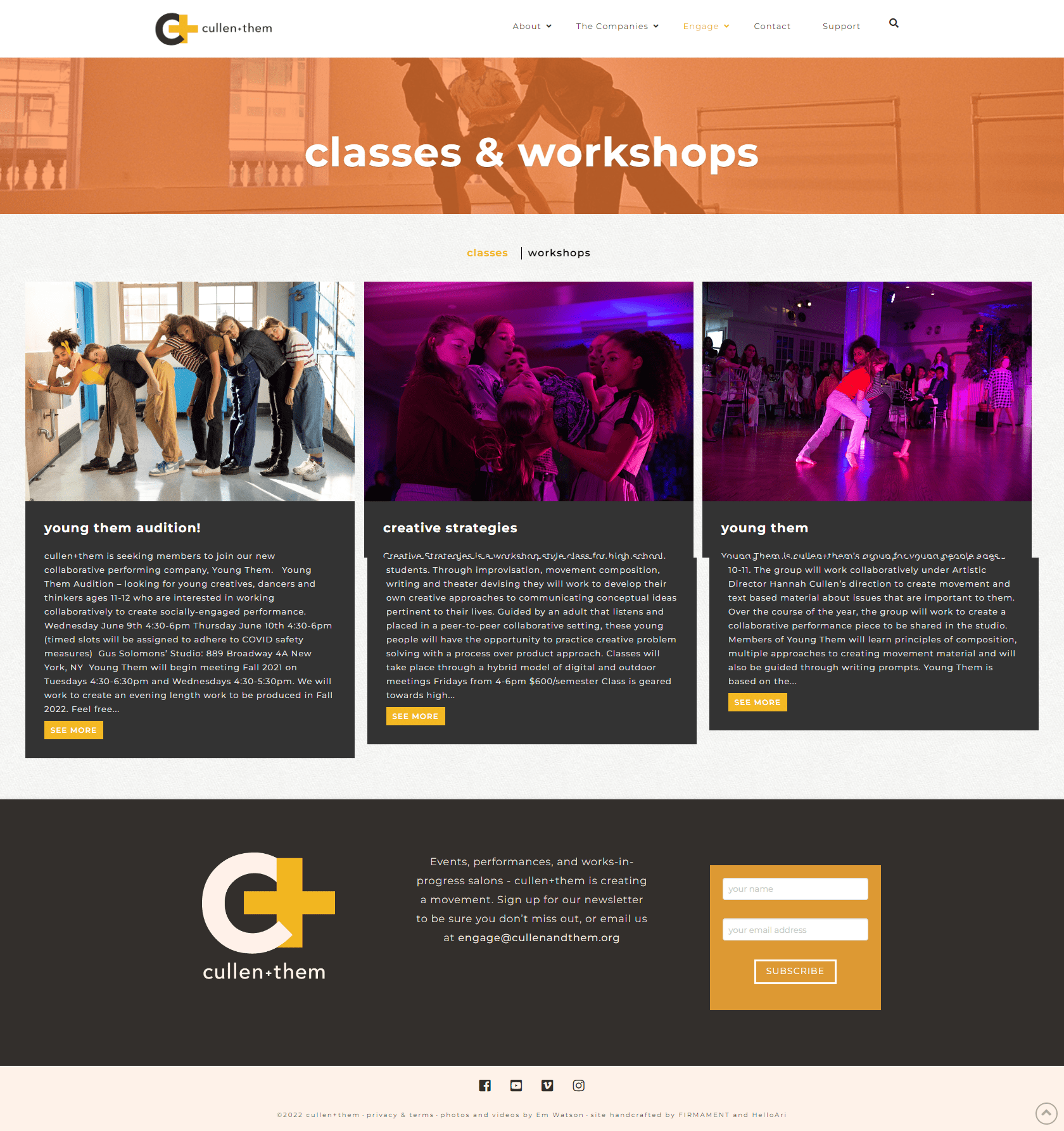 cullen+them is an intergenerational performing arts organization making socially conscious work and building empathetic community. The rich and informative website is built in partnership with FIRMAMENT.
