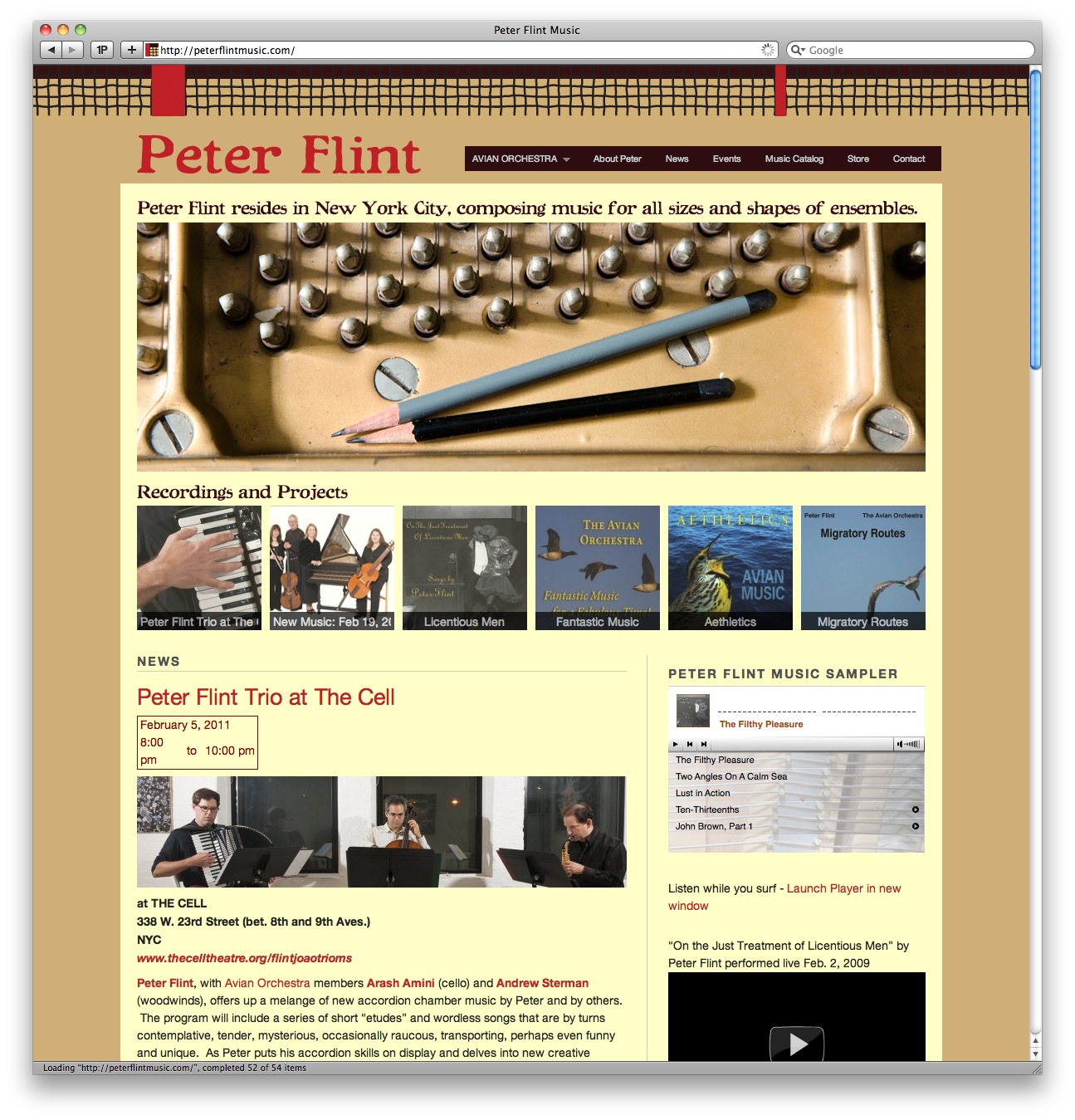Composer Peter Flint came to us with two older web sites that he wanted to modernize – one for himself as a composer and one for his ensemble – Avian Orchestra. We worked with Peter to combine the two into one new web site. Peter wanted a logo that matched the colors and designs on a favorite vintage tie of his. We created a logo, web site and business card, all with this same look. This site was created using the Modularity WordPress theme.